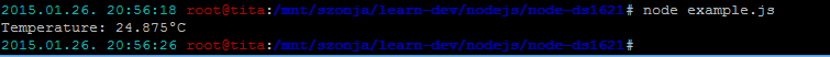 A DS1621 Node.js modul tehát telepíthető az npm repositoryból: