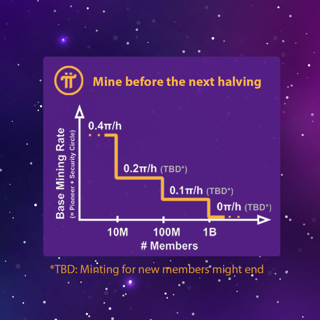 Ezzel akarják megelőzni a Pi elértéktelenedését. Jelenleg a bányászat alap sebessége 0.2 Pi/óra. Érdemes addig csatlakozni, míg lehet bányászni.